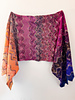 One size - a project made with recommended yarn makes a wrap that is 70” long x 20” wide.