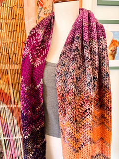 If your advent minis are so pretty you’ve been afraid to touch them, you’re not alone. The Astral Advent Wrap was designed for exactly that moment. With a classic linen stitch and an easy chevron pattern, this crochet wrap gives your fade yarn the spotlight while keeping the stitching relaxing and beginner-friendly. One color at a time, you’ll create a wearable keepsake to keep your holiday spirit burning bright.