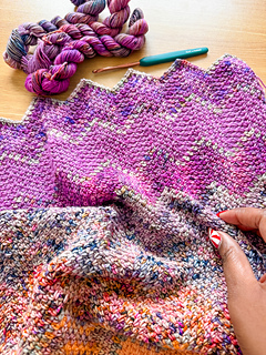 Astral Advent Wrap // A linen stitch crochet chevron rectangular shawl made with DK-weight yarn advent mini skeins.