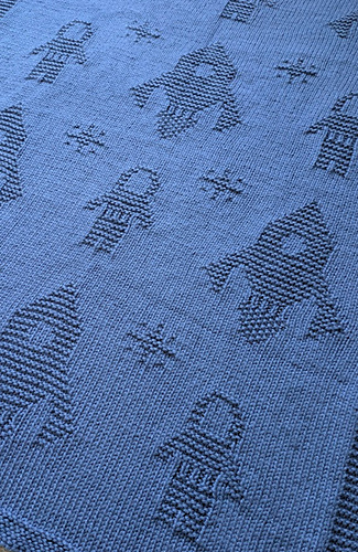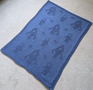 Please note that the number of astronauts and rockets (referred to below as motifs) on each blanket size differs but continue in the same arrangement set in the small size (pictured):