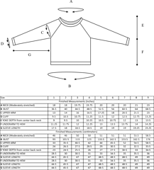 Finished Chest: 36 ½ (40, 44 ½, 48 ½, 52 ½, 56, 60½, 64, 68 ½)” / 93 (101.5, 113, 123, 133.5, 142.5, 153.5, 162.5, 174) cm