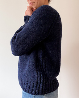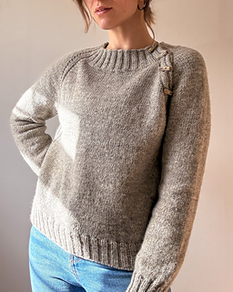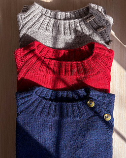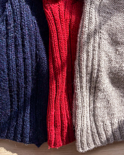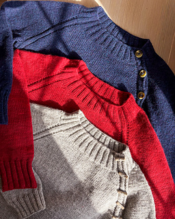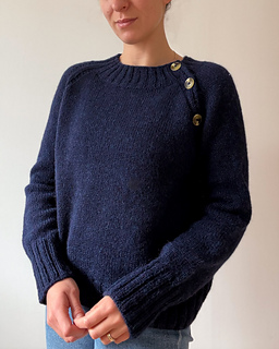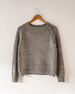 The Audrey Sweater is an oversized raglan sweater with 2x2 rib detailing running from the collar to the hem. It has a wide neckline and a relaxed feel. The yoke can either be worked flat and finished with buttons or worked in the round. Either way, after completing the yoke you will join to work the length of the body and then the sleeves in the round. The cuffs and hem are finished with 2x2 rib.