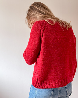 For my red sample without buttons, I used Zakami Organic Merino DK (100% merino wool; 100 g = 225 m / 246 yds in the shade Momiji.