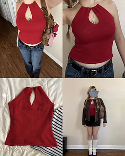 - Optional- Elastic thread & 1 button (for halter closure) what I used/ my yardage