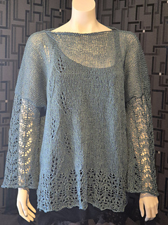 Mudden på toppen och ärmarna är stickade i ett fint spetsmönster och du väljer lätt själv hur långa ärmar du vill göra.