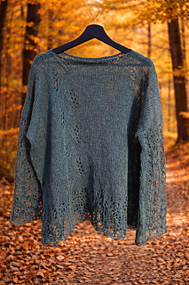 The cuff and sleeves are knitted in a nice lace pattern and you can easily choose the length of the sleeves yourself.