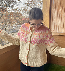 Notions: Stitch markers, darning needle, leftover yarn, 6 (6, 6, 6, 6) (6, 7, 7, 7) buttons approx. 19–20 mm in diameter