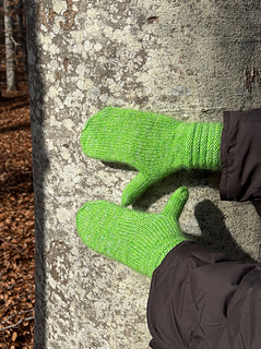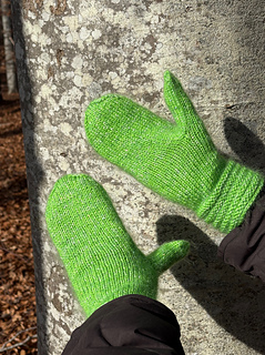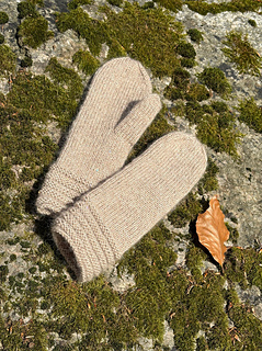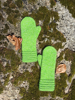 Create this soft and sparkly mittens using three strands of yarn held together.