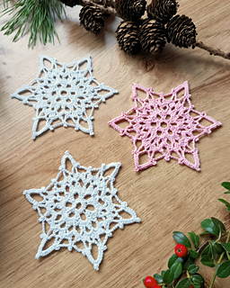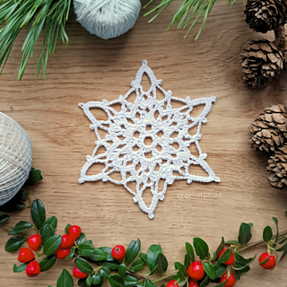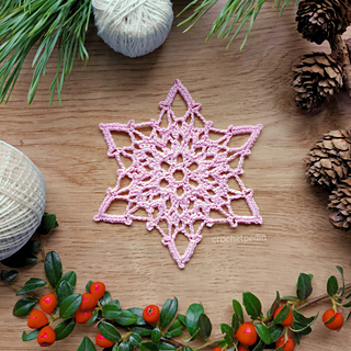 We’ve reached the last of the seven snowflake patterns from my 2025 collection! This project combines lacy elements with a more solid center. If you use heavier yarn and stiffen it dry, it could even double as a festive coaster.