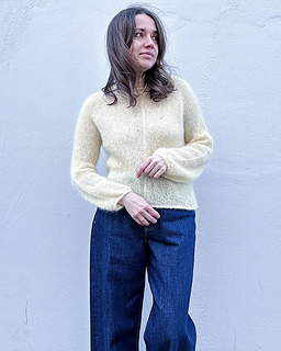 Approx 6 (7, 7, 8, 9, 9, 10) balls / 150 (175, 175, 200, 225, 225, 250) g of Drops Kid Silk (75% mohair, 25% silk; 25g / 0.88oz, 210 m / 230 yds, color 52 Lemonade)