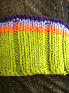 Since I got my hair cut short I’ve been addicted to headscarfs and headbands. From just a scrap of fabric tied around my head to a handknit band. It’s a pretty simple pattern, chunky ribs and easy colour changes. This headband gets it’s name from the colours I chose. They seem to remind me of Autumn for some reason. This band works really well keeping shorter hair up in a pony tail and out of the way.