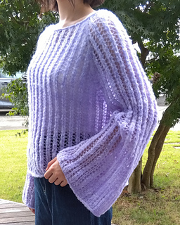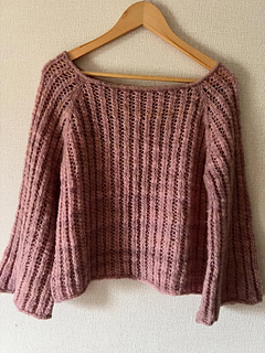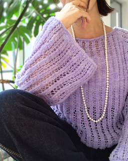 Autumn Breeze Pulloverはトップダウンで編むとじはぎのないラグランセーターです. ネックから輪で編み始め透かし模様を編みながらラグラン部分で増し目をします. 脇下まで編んだら一旦両袖を休めておき身頃は増減なしに編み裾はi-cord BOで伏せます. 休めておいた袖を針に移し増減なしに肘下まで輪で編んだら, 数周おきに増し目をしてフレア袖を作りi-cord BOで伏せます. 丈や袖の長さはお好みに調整できます.