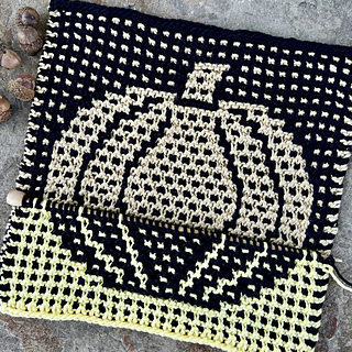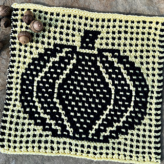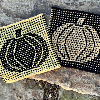 Welcome the fall harvest with this popular gourd. Knit a pumpkin into a cleaning cloth using mosaic garter stitch. Just one strand of color works every two rows while the other strand rests at the edge. Gauge and dimensions are provided with a DK-weight cotton yarn. Choose colors that contrast well. Try your camera’s “black & white” setting to look at your yarns in grayscale and check the contrast between your selection(s). Both positive and negative charts are included in the pattern.
