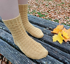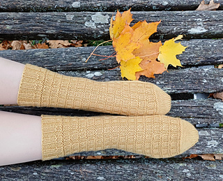 A delicious treat… but for your feet! Inspired by the natural world — the changing of the seasons and harvest time — these socks feature a pretty broken rib motif that is easy and enjoyable to knit. A solid or tonal/semi-solid colour yarn looks very attractive for this design and is also well suited to the special, gently speckled yarns. The pattern is written using the Magic Loop method for sock knitting, but it is easily adaptable to double-pointed needles (DPNs). Use your favourite four-ply or fingering-weight yarn. This pattern is ideal for both beginners and more experienced knitters. Please read all of the pattern instructions before beginning the project.