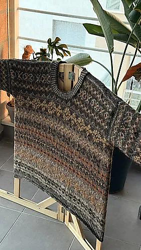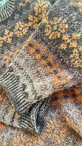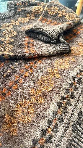This description contains the working algorithm and patterns for the sweater. You can view the knitting stages of the sweater on my Instagram little_bonapart and on my YouTube channel little_bonapart_knitting.For this sweater, I used 3 shades of natural undyed yarn and 3 shades of orange yarn from Dundaga merino 6.1. You can also use other colors with this same scheme of color combinations. In the description, I also provide one example of color combinations for Donegal Tweed.If you want to buy a yarn kit from Dundaga for this sweater in the colors I used or in other color options, please contact me in direct messages on my Instagram or here.