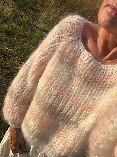 9 sts in half fisherman’s rib = 10 cm using needle size 9 mm in Fat Mohair.