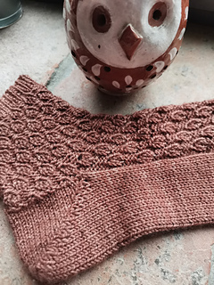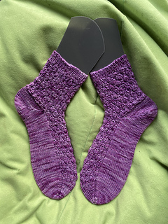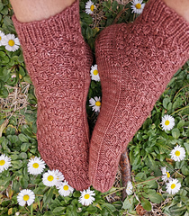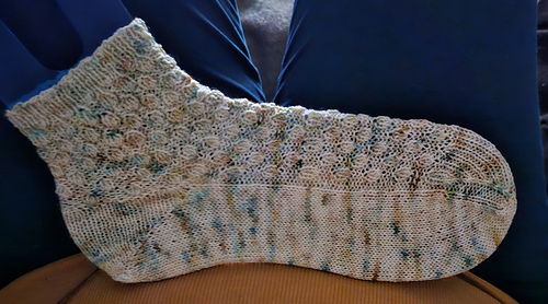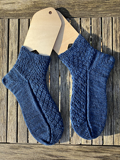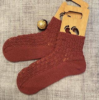 Note that the lace pattern is somewhat stretchy; swatch carefully and block without stretching the sock too much.