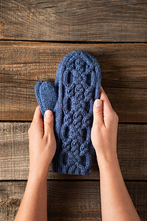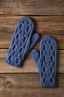 Approximately 85 g (158 yards) of Aran weight yarn is used for the mittens.