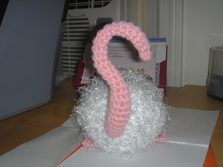 His fuzziness comes from holding fun fur and worsted yarn together. His tail is curved because of a pipe cleaner.