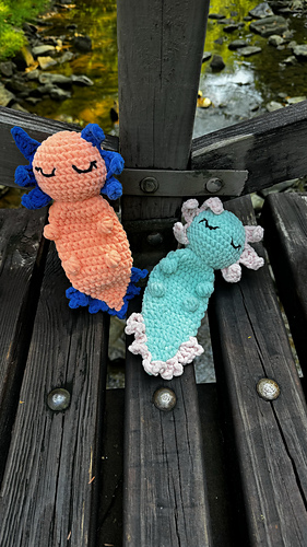 This fun axolotl lovey makes a great gift for your favorite little one! It’s pretty quick make and is great for markets. Purchase this pattern today to make for yourself, a gift, or your business. This is an advanced beginner to intermediate level pattern. Basic amigurumi knowledge is best. There are some special stitches with explanations and pictures. If you have ANY questions at ANY time, please message me through this platform or on Instagram. Purchase this pattern today to make for yourself, a gift, or your business. Do not resell or claim this pattern as your own. THIS IS A DIGITAL FILE ONLY.