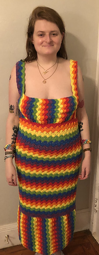 You will need any type of 8 ply (light worsted) weight cotton yarn in 1 or as many colours you like, I used roughly 2100m for the maxi length size small (UK 8), you will not need this much if making a shorter version. You will also need a 3.5 mm crochet hook and some elastic; this will be joined into the waistline and give extra support.