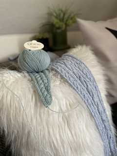 The Azzurro Shawl is a beautiful scarf with cabled details. The luxurious cashmere will feel amazingly soft against your skin. It is worked from one tip with increases to the middle, comes with a optional main section and ends with a decreasing tip. Depending on how much yarn you have available, it can be easily adapted to your amount of yarn.