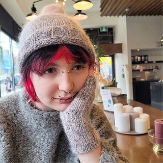 A simple, warm, and lightweight cowl, knit with a luxurious two-yarn combination for an incredibly soft and airy texture. Perfect for adding an elegant touch to your winter wardrobe.