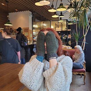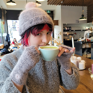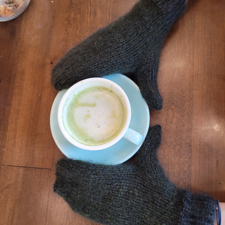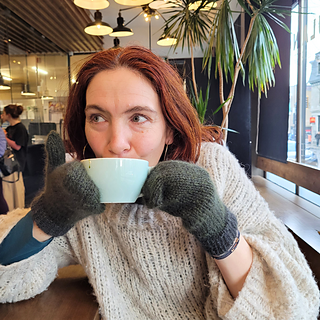 I design each duo : Cowl + Mittens or Hat + fingerless mittens with just one ball of each, holding both thread together for a quick and voluptuous knit. Be careful, you will have to knit your sample to avoid running out of yarn.