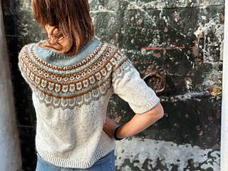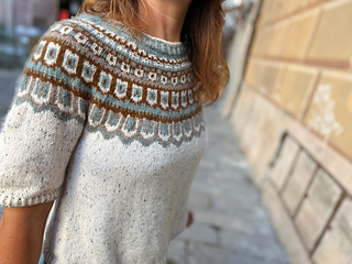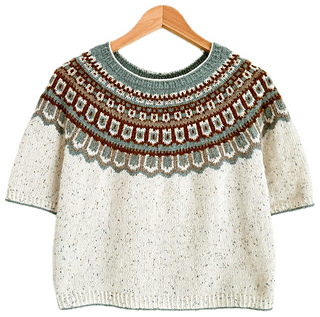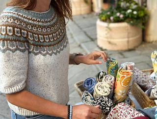 “Babele Tee” is a classic, unisex sweater decorated with geometric patterns. It can be knitted with either short or long sleeves. The PDF contains instructions for both versions.