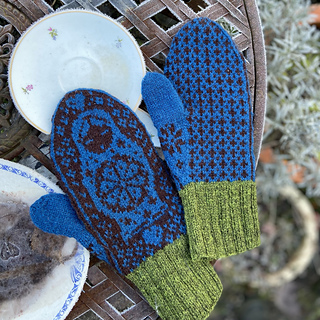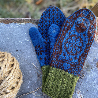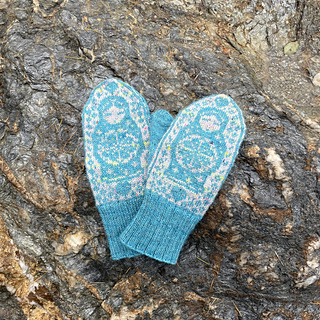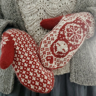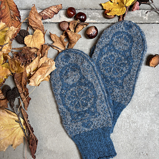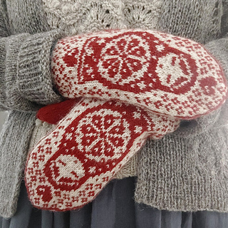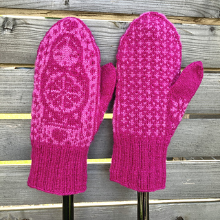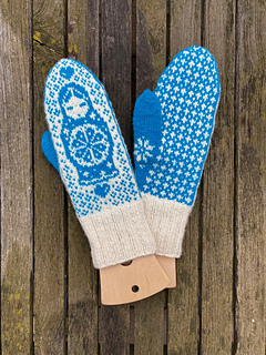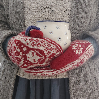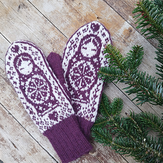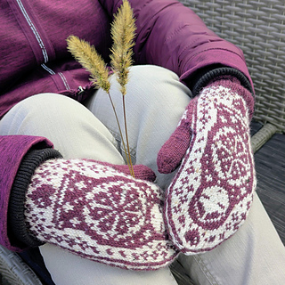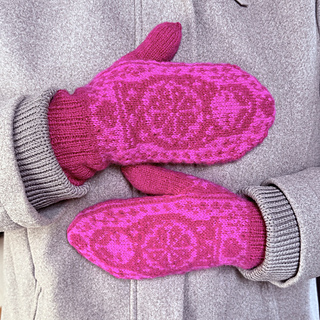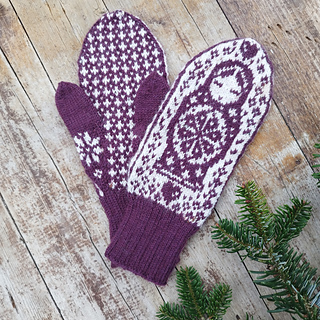 The pictured mittens have been worked with Rauma Finull, 191 yds (175 m)/1.76 oz (50 g).