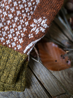 US 0 – 1 (2.0 – 2.25 mm) circular needles for the cuffs, US 1.5 – 2.5 (2.5 – 3 mm) circular needles for the colourwork, cables 32 – 40“ (80 - 100 cm) for Magic Loop. If you prefer working with DPNs, distribute the stitches accordingly.