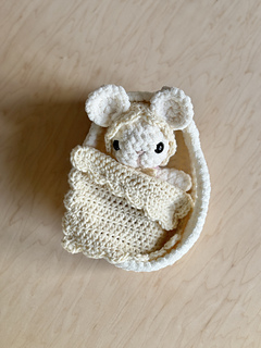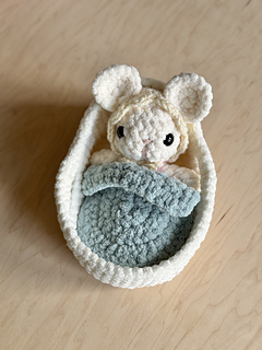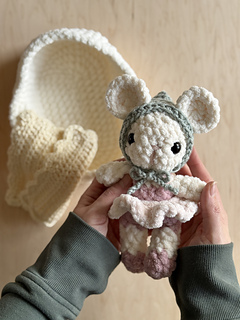Pattern includes COMPLETE instruction for the Baby Brie Mouse with Pixie Hat pattern, as well as a separate pattern for a bassinet, blanket and bonnet. This is a great pattern for gifting and perfect for beginner-intermediate crocheters!