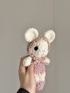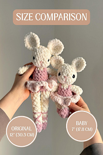 This adorable BABY ballet mouse crochet pattern is perfect for little hands and quick market makes! This pattern is made using plush blanket yarn, creating a soft and huggable finished toy.