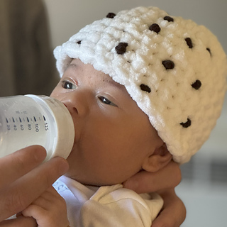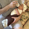 This is a straight-forward pattern (but maybe Advanced Beginner or Intermediate) for a Cocoon and Hat that makes fuzzy “filling” for the Cannoli, a circle in the round for the “shell,” and Chocolate Chips on the Hat and end of the cocoon.