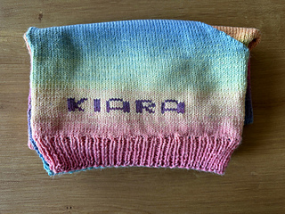 Ein Freund wird unerwartet noch einmal Vater. Daher wird schnell aus dem Garnvorrat ein Kimono-Pullover für die kleine Kiara gestrickt. Damit sich die Mühe lohnt, habe ich den Sweater in Größe 86 gearbeitet, so dass es für das im August geborene Kind im zweiten Herbst passen wird. Die Arbeit erhält zudem vorne den Namen des Kindes, so dass das Geschenk wirklich ganz persönlich ist.
