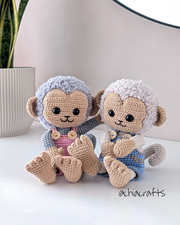 Meet the sweetest little monkeys you’ll ever crochet! With their tiny toes, chubby limbs, and removable overalls, they’re designed to be both adorable and fun to make.
