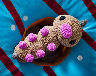 The approximate size of Baby Weedle, using the listed materials below, is 30cm (12 inches) long and 15cm (6 inches) wide.