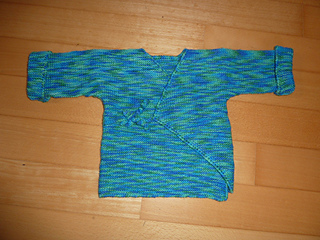 The whole jacket for newborn babies is knitted in one piece in garter stitch, i.e. no purls needed. One row of backwards single crochet added around all the edges (tutorial links included). Easy fitting - no Buttons, therefore it grows with the Baby.