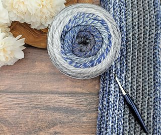 The original yarn used for this project has been discontinued. You can substitute Red Heart Roll With It Melange, which has a similar weight and yardage and will give you a comparable result.