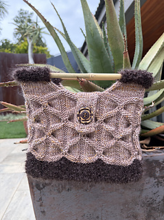 La pochette BAGGU N°4 se tricote comme un tube, puis se plie pour former 3 poches. Amusez-vous avec de la laine bouclée ou du mohair, selon vos préférences !