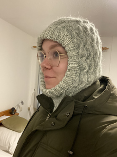 This cozy, soft, and warm balaclava with a cable pattern is knitted from a combination of merino and mohair. It will keep you warm and make you look good too! Perfect for cold days, winter walks, or just cozying up.