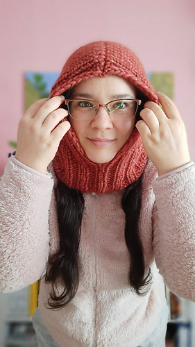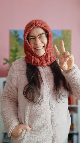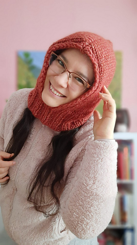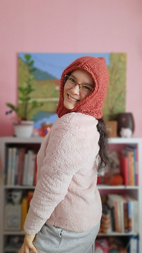 A peça segue a construção tradicional de baixo para cima, sem costuras, adornado por um cós gola em canelado 2x2, e um padrão liso em ponto jersey no capuz, com um detalhe na ourela da peça, o que lhe confere um toque muito especial e bem aconchegante, que tornam esta balaclava num acessório bem quentinho e indispensável neste Inverno, adequado a todas as ocasiões.