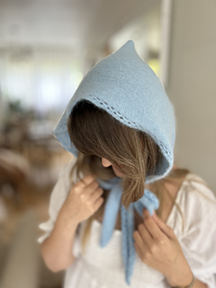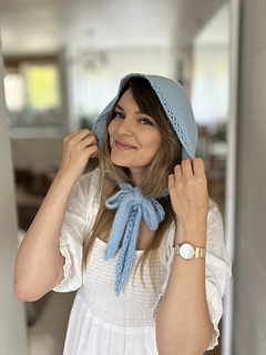 Balaclava–komin z subtelnym, wiązanym pod szyją mini-szaliczkiem. Wykonany z