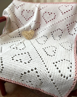 Beautiful white hearts baby blanket filet crochet pattern / Baby girl blanket crochet pattern / Square blanket pattern / Easy small blanket pattern