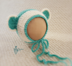 I have added the addition of ears at the end of this pattern so you can have another option to make it a bear bonnet. Pattern for the ears is included.