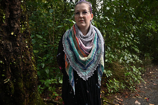 This shawl is designed to make the most of the mini skein bundles available as part of my Scottish Goddess Collection. The large version shown in the photos uses uneven stripe widths and different numbers of rows per colour to use up as much of each mini as possible. This version uses:
