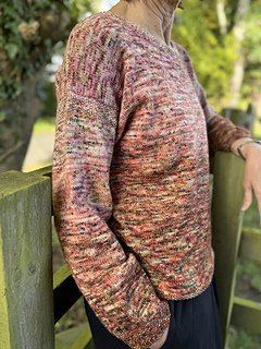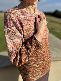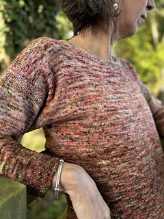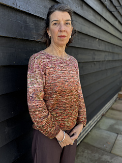 Worked from the bottom up, it’s knitted in the round to the underarm, then split for the back and front yokes. Short row shaping sculpts the shoulders, which are joined using the three needle bind off technique, then the sleeves are picked up and knitted downwards in the round to the gently gathered cuffs.