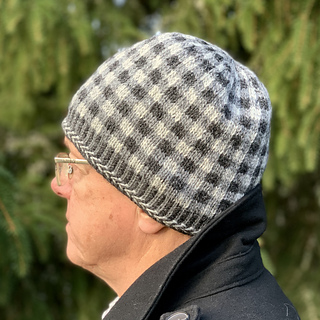 Mössa stickad i bardotmönster som blir väldigt varm och skön med mönsterstickningen.