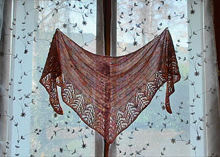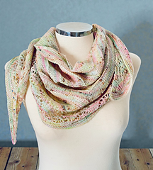 The triangular shawl is knitted flat from top to bottom with one skein. The size can be easily adjusted, you can use less than one skein of fingering (or another weight)or more.