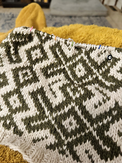 Gauge: 20.5 stitches/25 rounds = 4” (10 cm) square in colorwork using US 6 (4 mm) needles or whatever size needle gives you the fabric you would like.